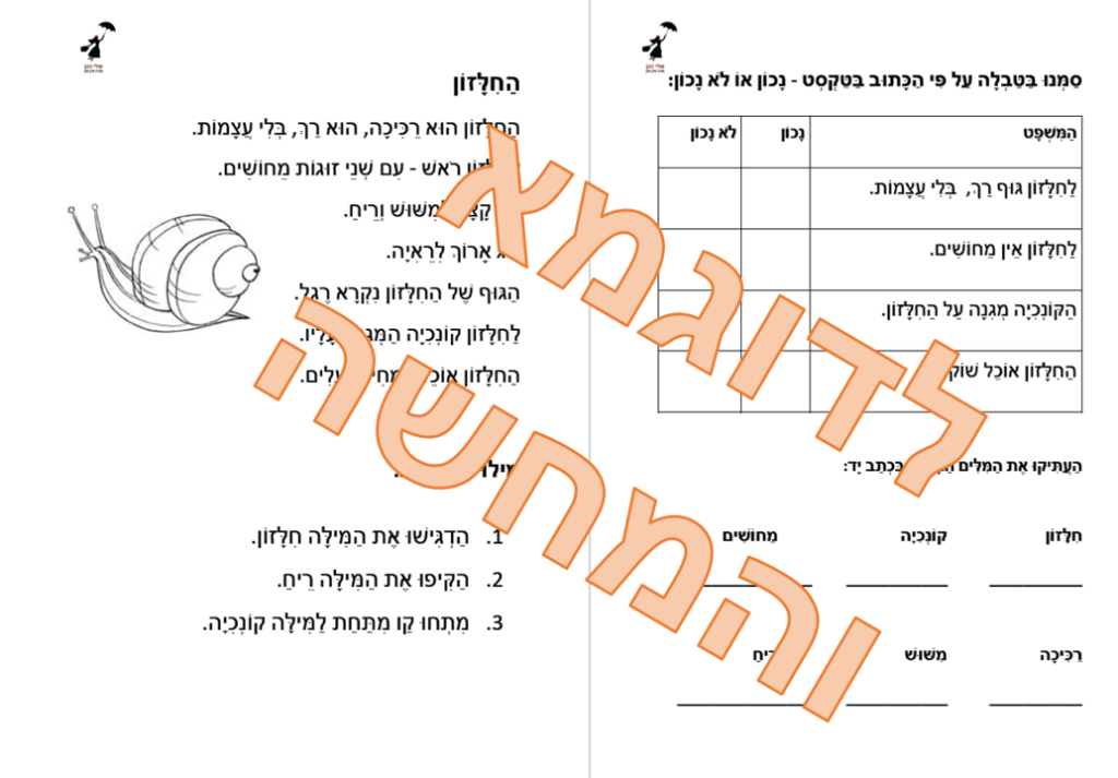 החילזון – טקסט קצר בתבנית המעודדת שטף והבנה